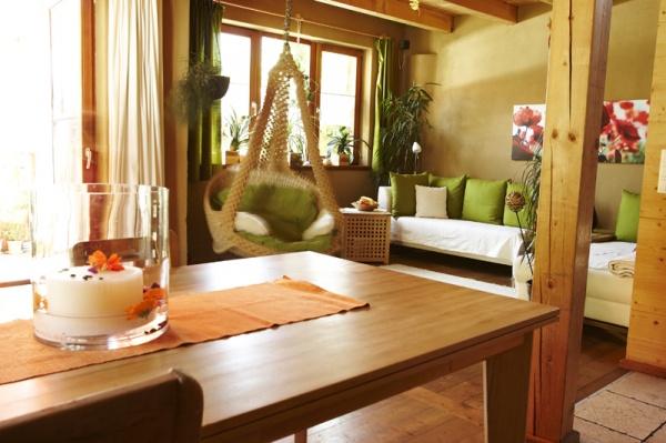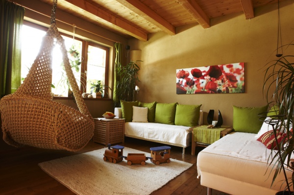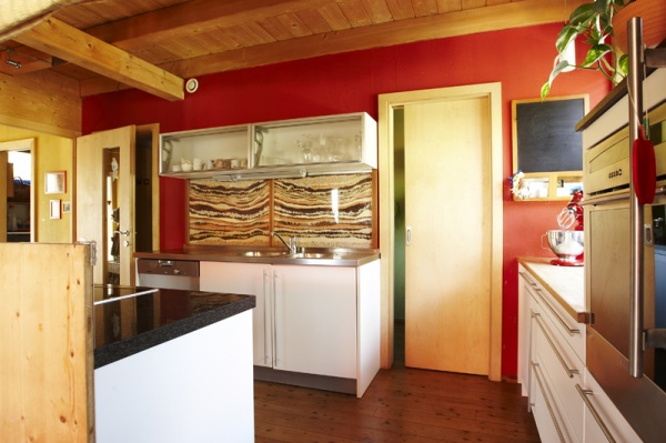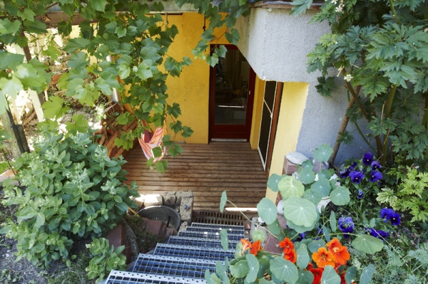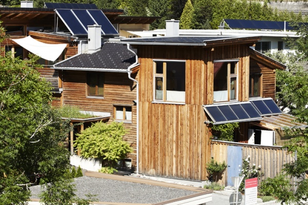 Die kleinen Grundstücke ließen bei der Gestaltung wenig Freiraum, trotzdem wurde auf die Nachbarsituation Rücksicht genommen. Das Doppelhaus wurde in Holzständerbauweise errichtet, die Wohnräume werden durch die offenen Grundrisse und die ökologische Bauweise mit Holz- und Lehmoberflächen geprägt, der Raumeindruck wird durch Massivholzmöbel ergänzt. Die Fassade des Doppelhauses wurde aus sägerauher Lärche erstellt.
